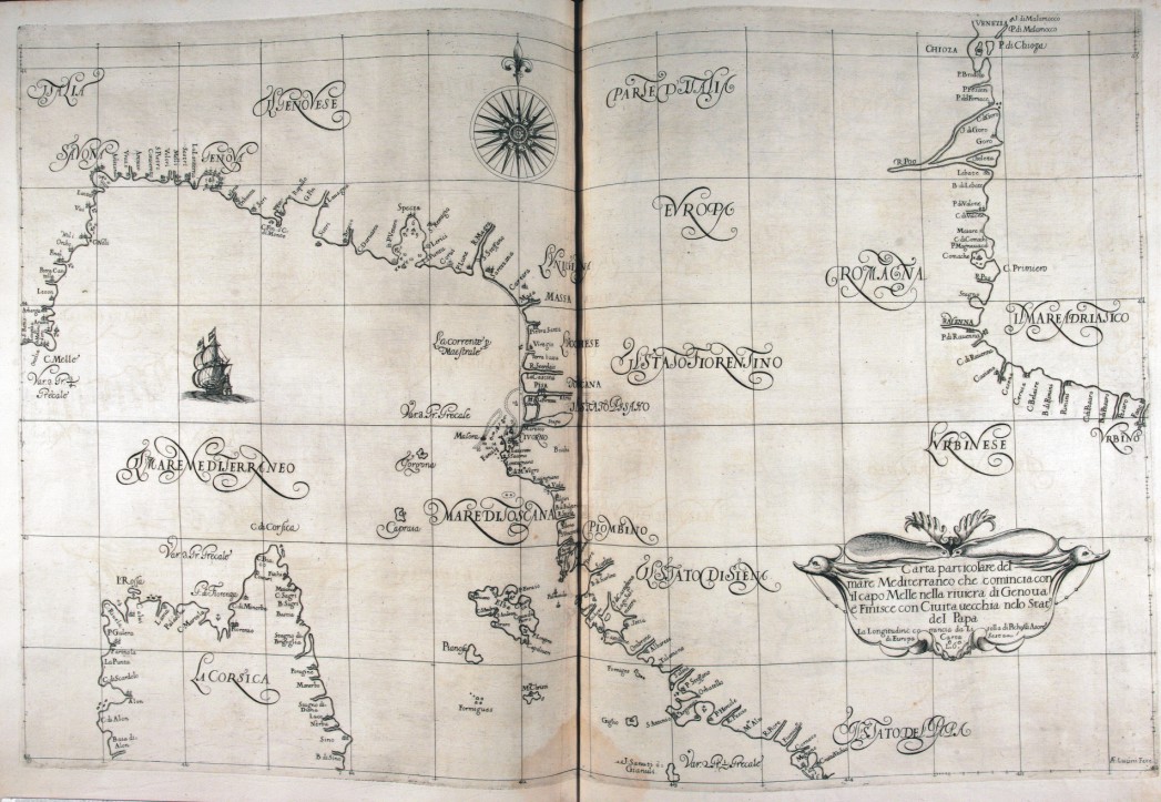 La carta, che misura cm 48 x 74.5, è contenuta nell'Arcano del Mare, il primo atlante marittimo inglese che comprende tutto il mondo. La carta copre la costa italiana da Sanremo a Civitavecchia e parte della Corsica settentrionale.